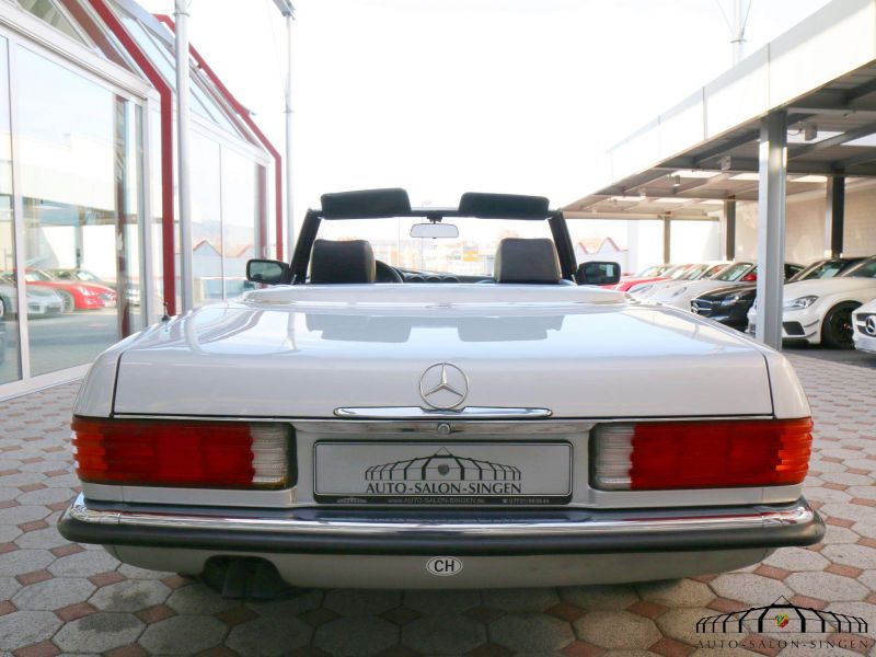 Gesuchter Youngtimer Mercedes SL 300 der Modellreihe 107. Dieser Wagen wurde im Juni 1986 an den Polizeichef in Berlin ausgeliefert. Es handelt sich bereits um eine modellgepflegte Ausführung. Der Wagen befindet sich im Originalzustand und hat nur einen weiteren Besitzer in den Papieren.