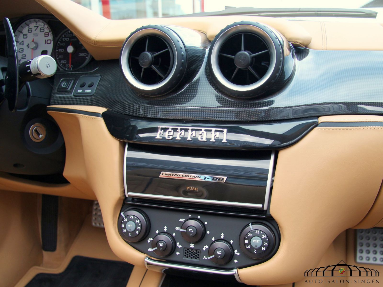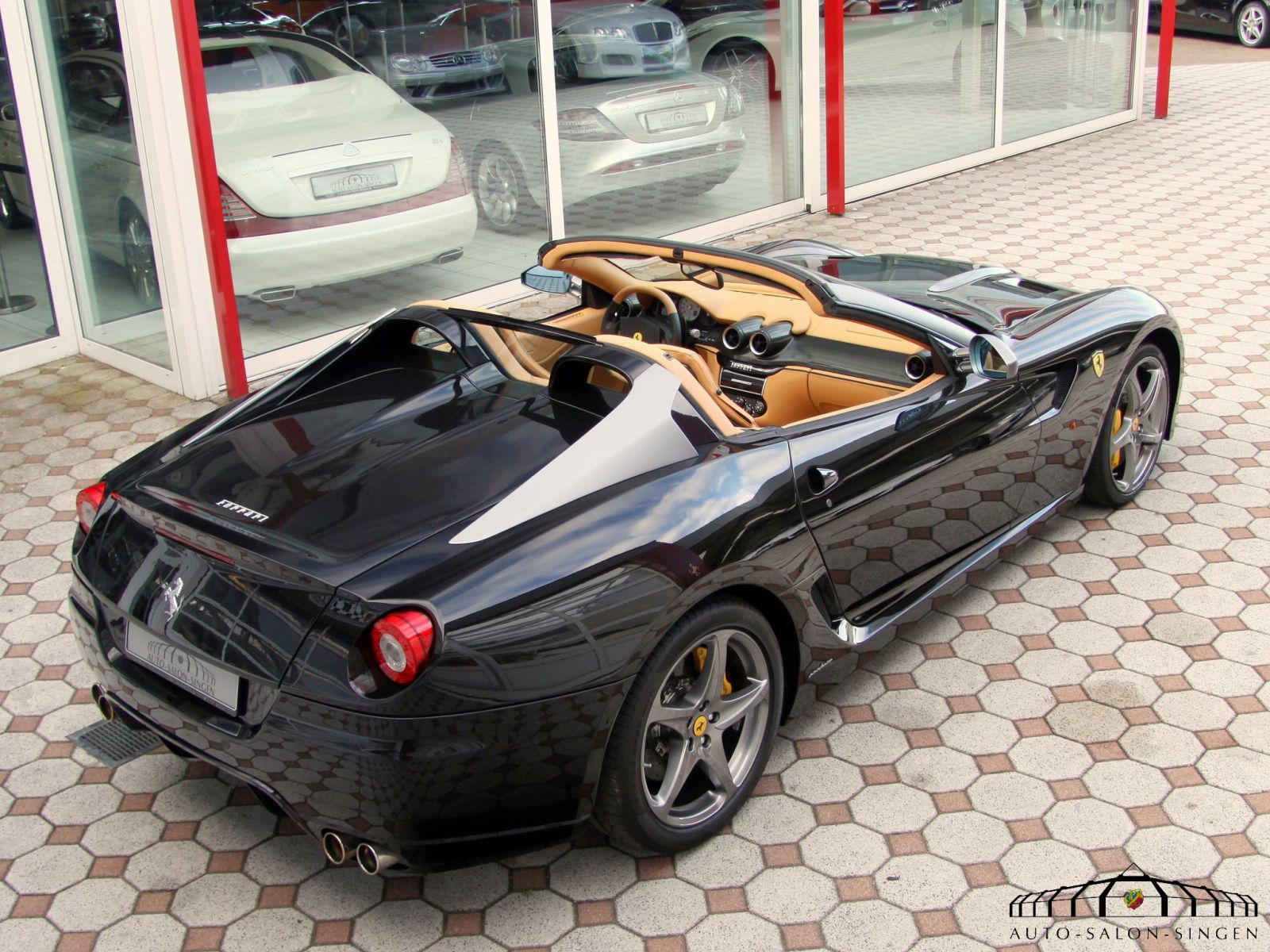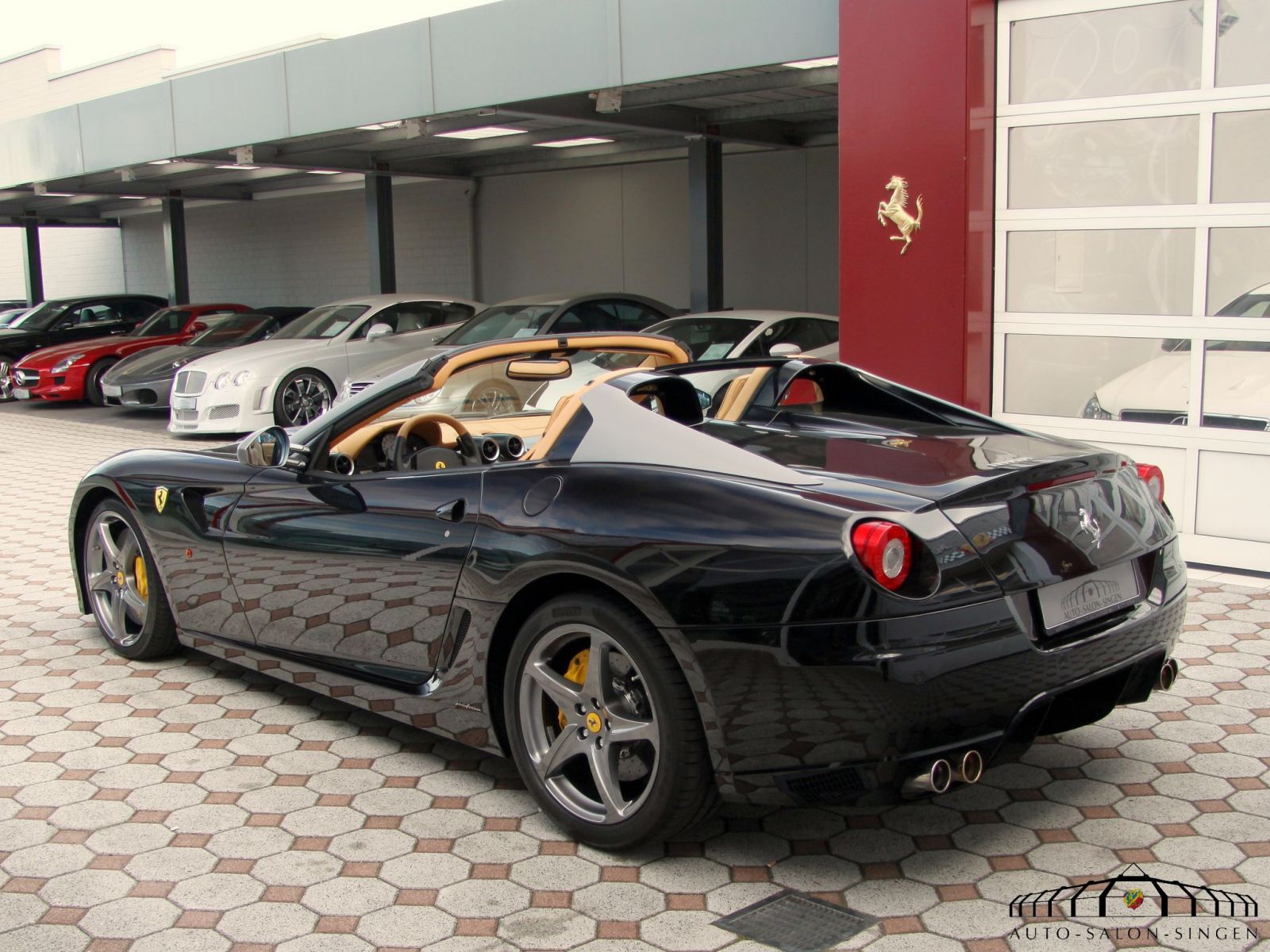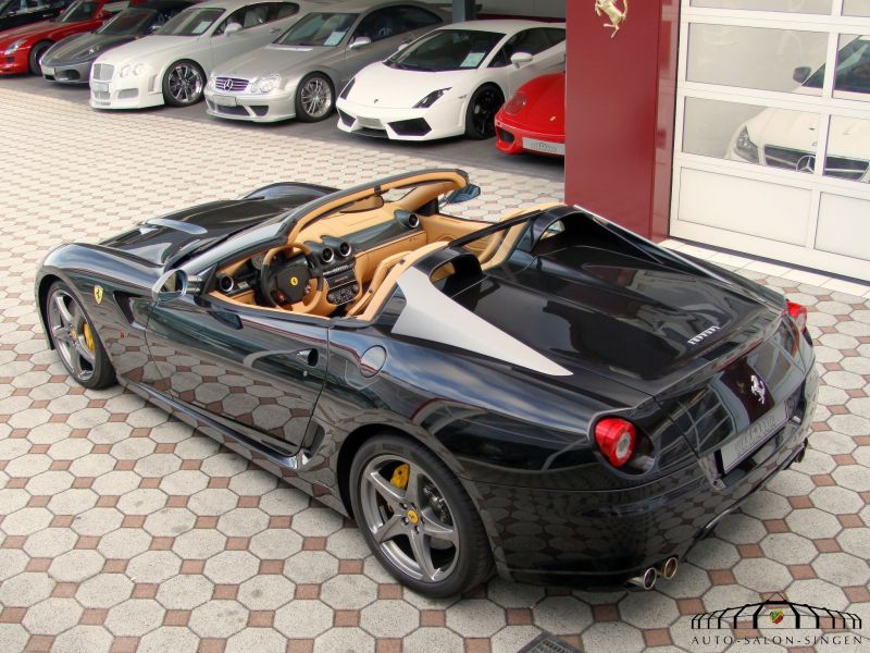 Ferrari SA Aperta Limited Edition 1 of 80 produced -12, Nero Stellato Pearl special metallic, Racing seats in Beige leather Alcantara, Mats in Beige alcantara, Interior panels in Carbon fiber, Black soft-top, Yellow brake calipers, Instrument panel in Beige leather, Ferrari Ipod, White RPM meter, Front and Rear park sensors, Piping in Nero black leather, 20- Grigio Silverstone painted 20- rims, Nero stitching, Passenger airbags system off, Racing seats in large, Heat insulated windscreen.