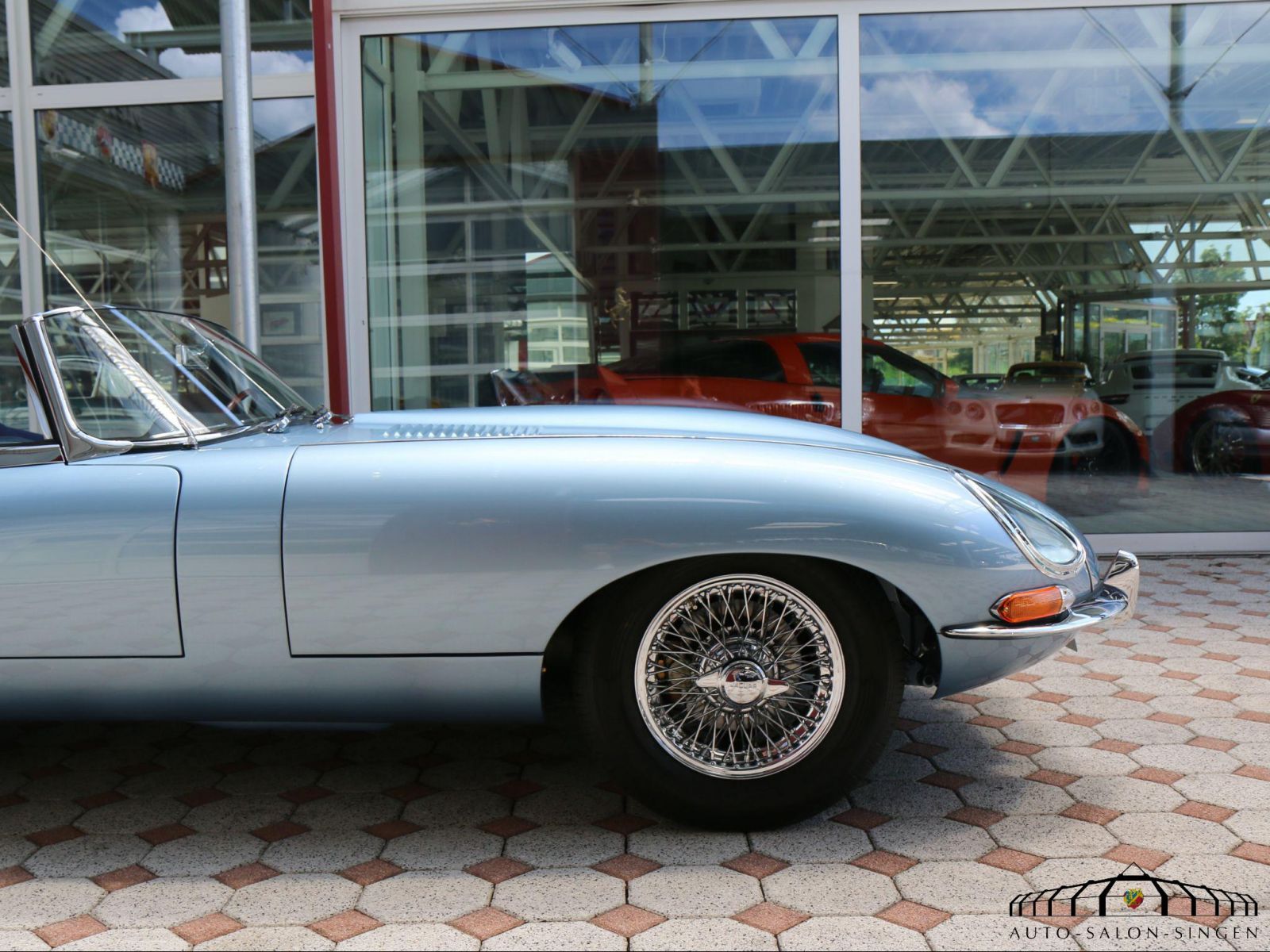 Viele Sportwagenattribute übernahm der E-Typ in seinen 3 Serien von seinen Brüdern. Vom D-Typ bekam er z.B. die selbsttragende Karosserie in Schalenbauweise, wobei ein Rohrrahmen den Motor und die Vorderradaufhängungen trägt. Vom E 2A erhielt der E-Typ die aufwendig konstruierte Hinterachse. Ein aus Stahl gepresster Käfig trägt das Differential mit den daran angeflanschten Scheibenbremsen, sowie die unteren Querlenker und je zwei Feder-Dämpfereinheiten für jedes Hinterrad. Die Hinterachse war so fortschrittlich, dass diese bis in die heutigen Modelle ihre Verwendung fand. Bei der ersten Serie wurde im Original der 3,8 Liter 6-Zylinder seines Vorgängers dem XK 150 verwendet, der mit drei Doppelvergasern 265 PS leistete.